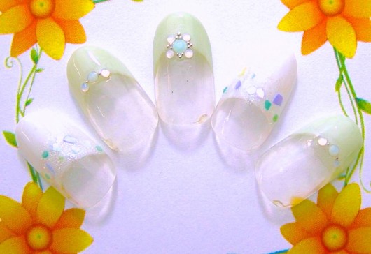NAIL シェルフレンチ SEASON ABOUT DESIGNデザインについて 淡いグリーンのフレンチに、ブルー系のストーンとシェルで。シェルの独特な光り方が、爽やかです。 ブログを見る MENUメニュー ジェルネイル 12,000円 NAILISTネイリスト ASSISTANT 梅原 千愛 CHIE UMEHARA WEB予約 < PrevNext > RECOMMEND DESIGNオススメデザイン