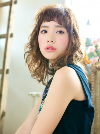 甘辛なラフで上品なランダムなふわふわほつれカールのカジュアルセミディスタイル。リバースに流れるカールがスウィートで大人っぽさも感じる雰囲気が今季のオススメです!!ショートバングがトレンドでかわいい☆