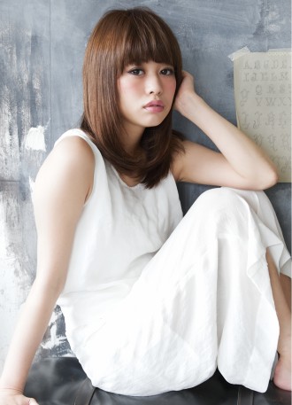 オススメのスイートストレートの大人かわいいスタイルです!誰もが憧れるツヤツヤ指通りサラサラなか髪眼力アップの厚めバングが小顔キュート♪カラーはエンジェルグロスカラーで艶をアップ!ストレート縮毛矯正はお任せ下さい☆のばしかけや黒髪OK/横浜西口